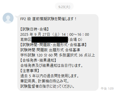 試験の3日前に「試験3日前になりました。(試験日などの)変更がある方は本日までにお願いします。」みたいな最後通告がきますよ。(笑)